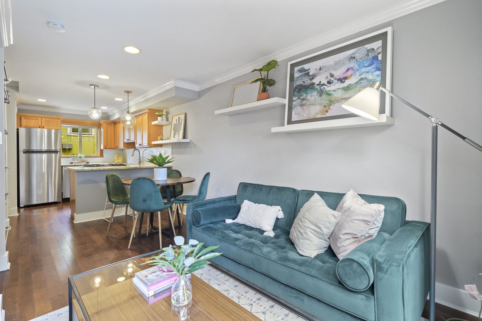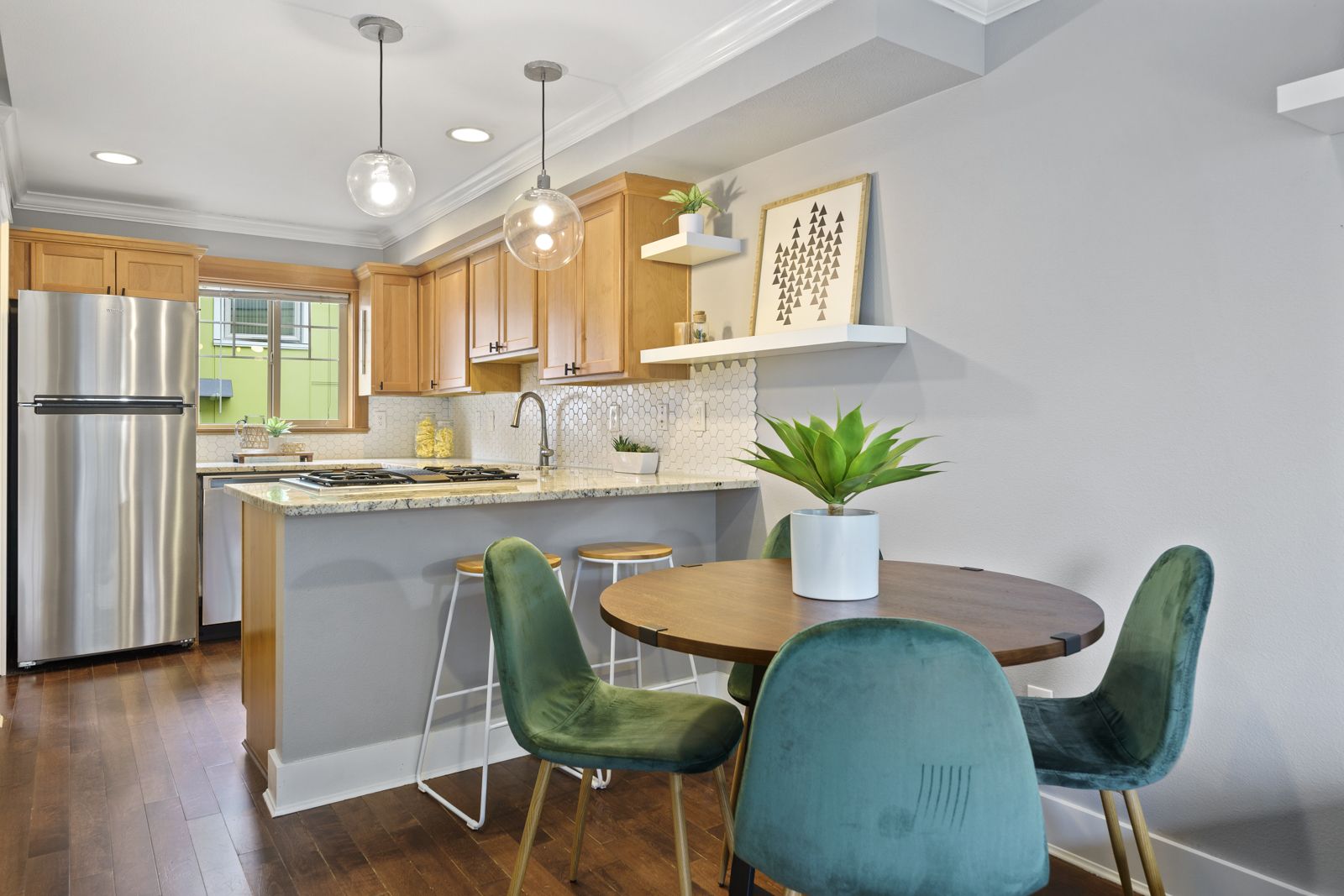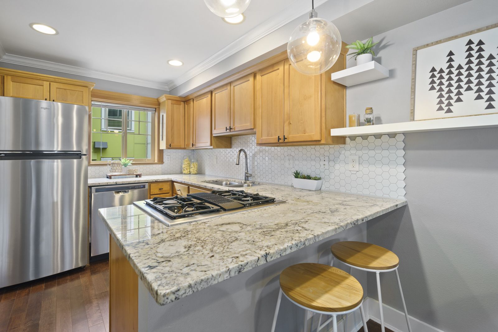 Desirable details can be found throughout, including hardwood floors, fresh interior paint, stainless steel appliances, a gas cooktop, and a bright, open layout.