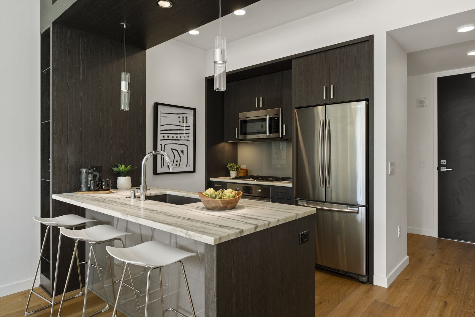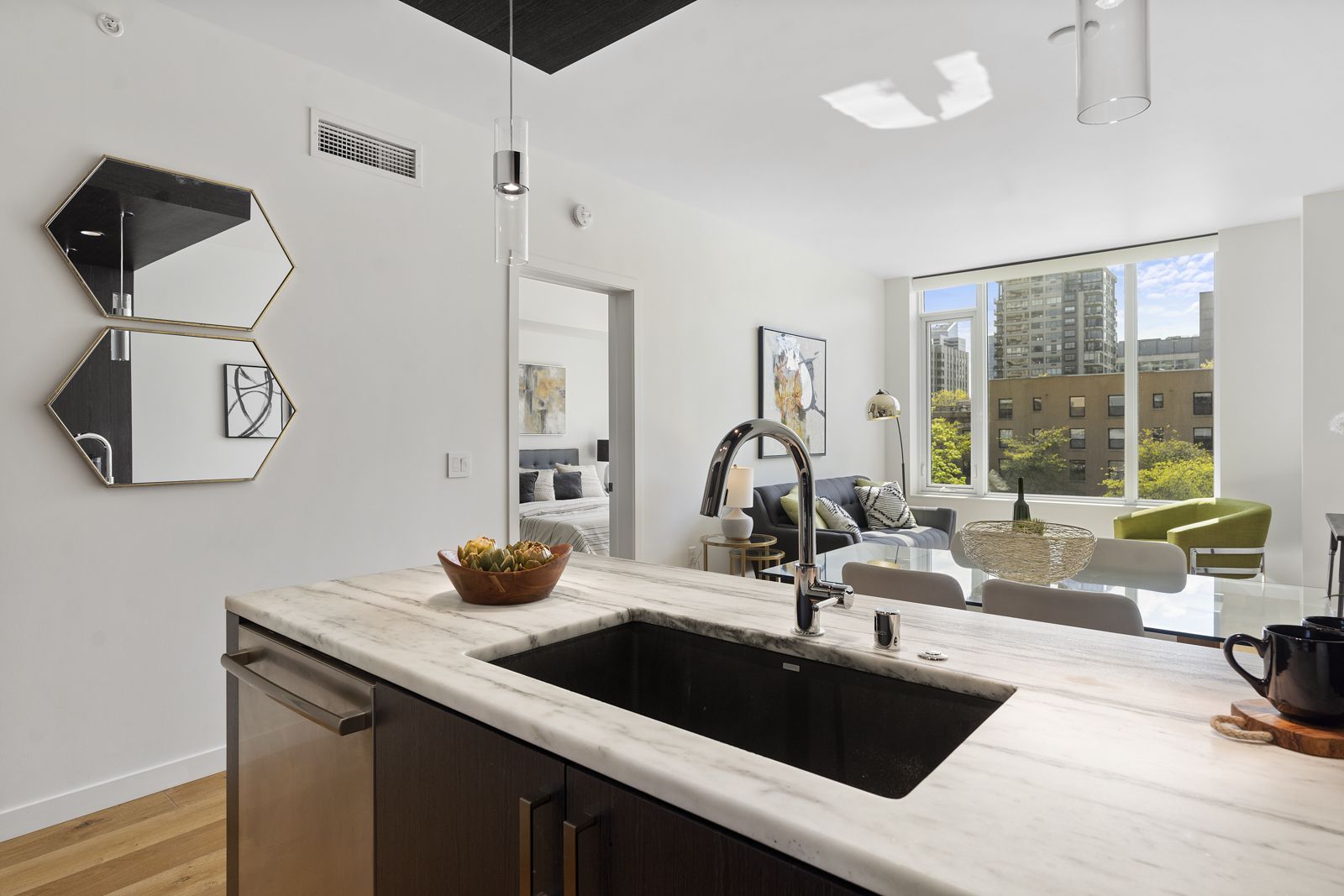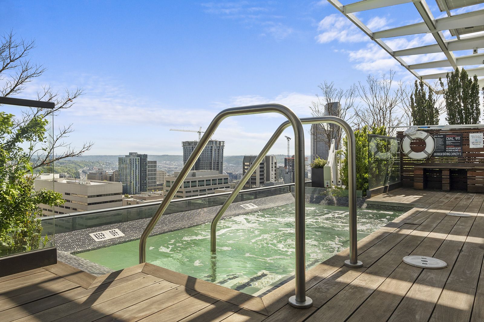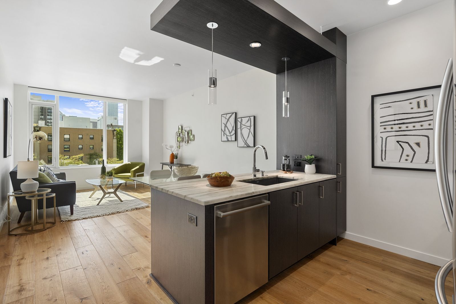 • There are high-end Lutron smart shades in the unit that efficiently offer privacy without sacrificing style or making it feel cramped and dark.