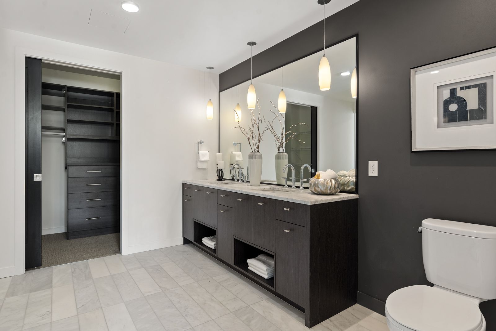 • We installed a custom California Closet system not only for efficiency, but also for the look - this customized storage system helps keep everything organized, visible, and clean.