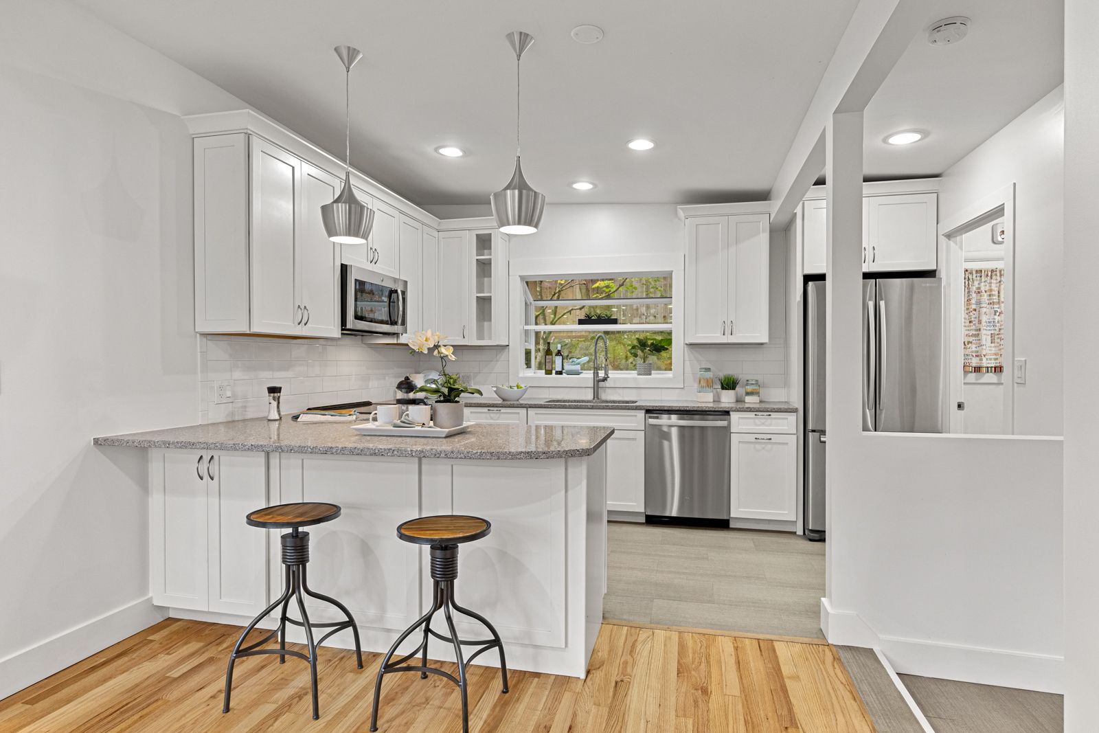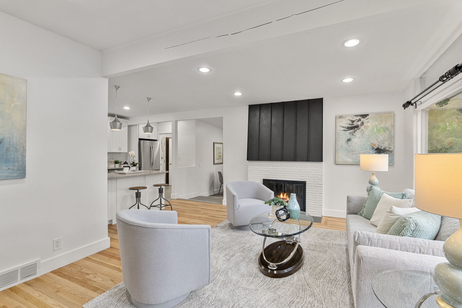 Perched above the street for ideal privacy and fantastic easterly light, this Shoreline rambler truly has it all: mid-century flair, a stylish remodel with modern upgrades, one-level living, a low-maintenance yard, and an unbeatable location with top-rated schools! Move in and enjoy refinished hardwoods, a studs-out kitchen/bathroom remodel, updated electrical, large windows, and a reimagined open layout that lets life and light flow through with ease. Flexible 3-bedroom layout includes a large primary with a bay window and bench seating. Retreat to your serene backyard oasis with a patio and water feature, and soak up stunning fall color from mature maples around you. Ample parking for multiple cars. Ultra convenient location with new light rail, fantastic dining, groceries, parks and more minutes away!