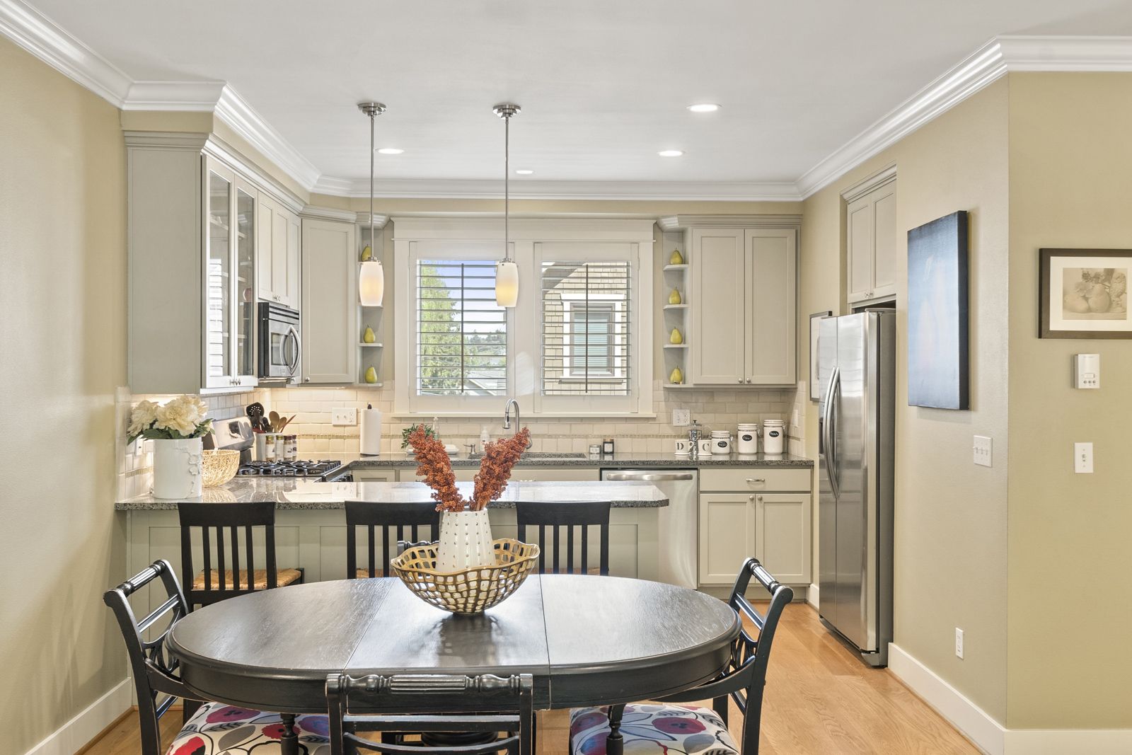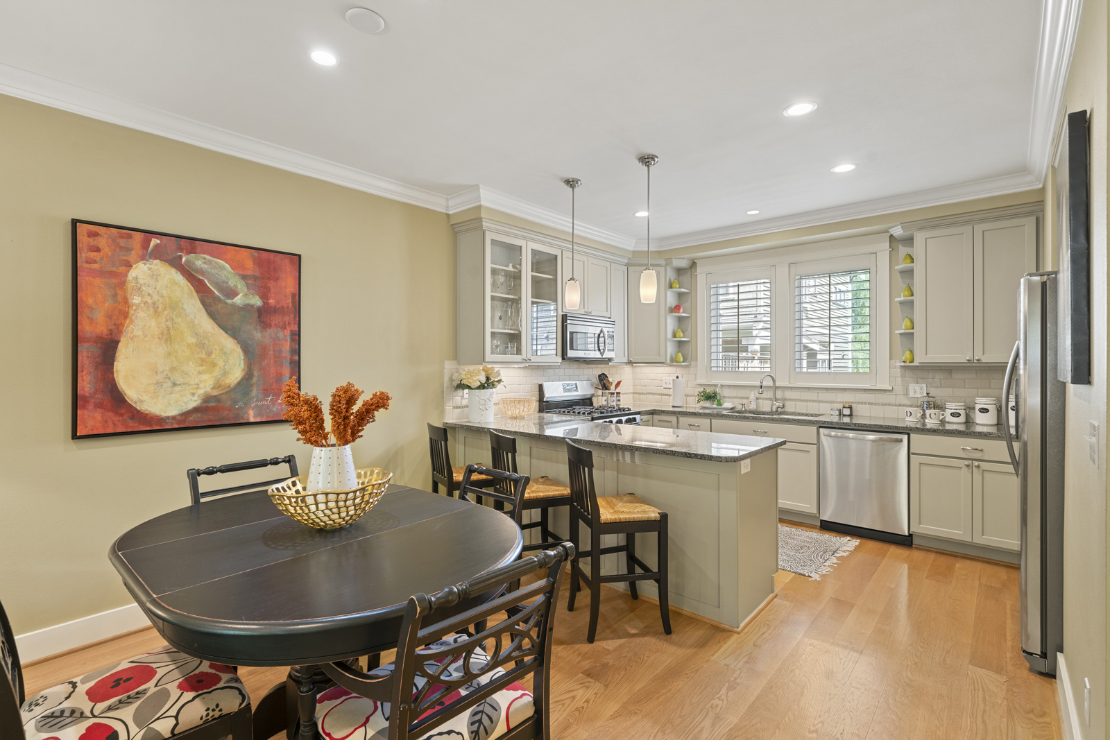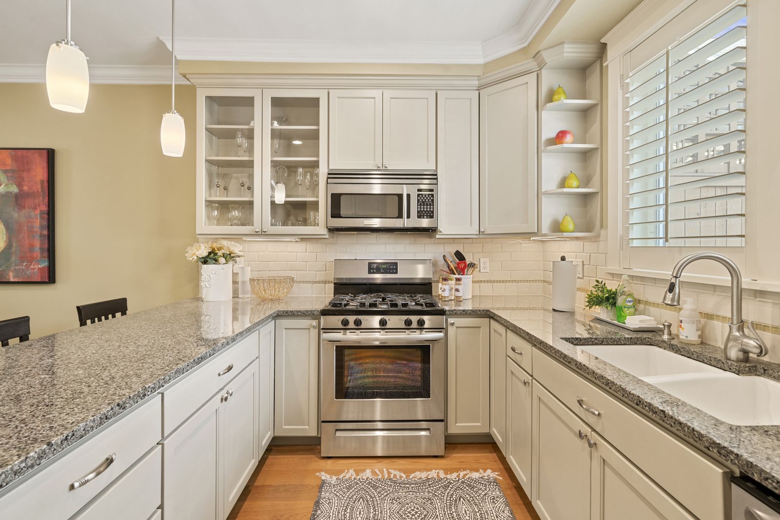 This charming craftsman home greets you with a covered porch entry, leading you to oak floors, vaulted ceilings, smart built-ins & radiant in-floor heat. Whip up tasty meals in the gourmet kitchen, complete with stainless steel appliances, walk-in pantry & granite counters. Lofted master with skylights & ensuite bath.