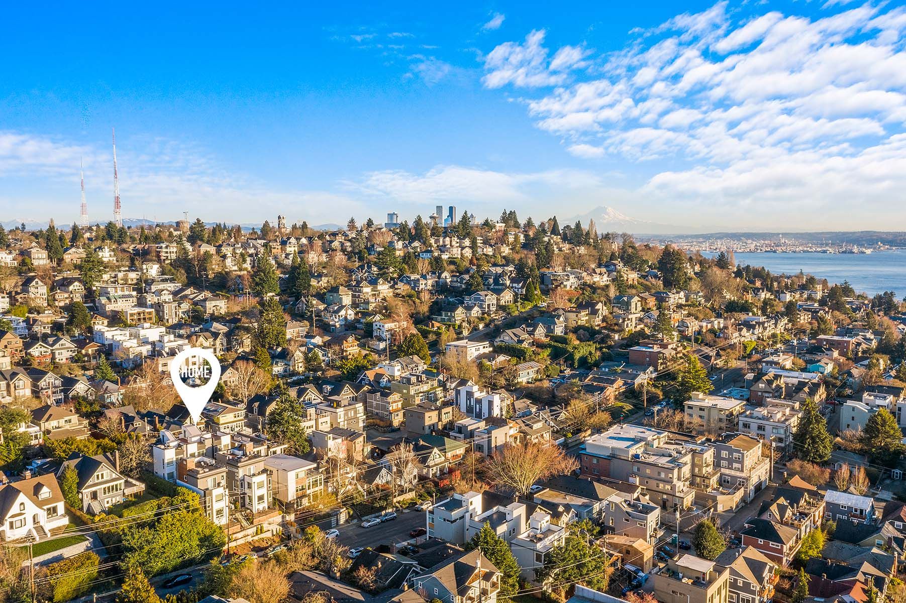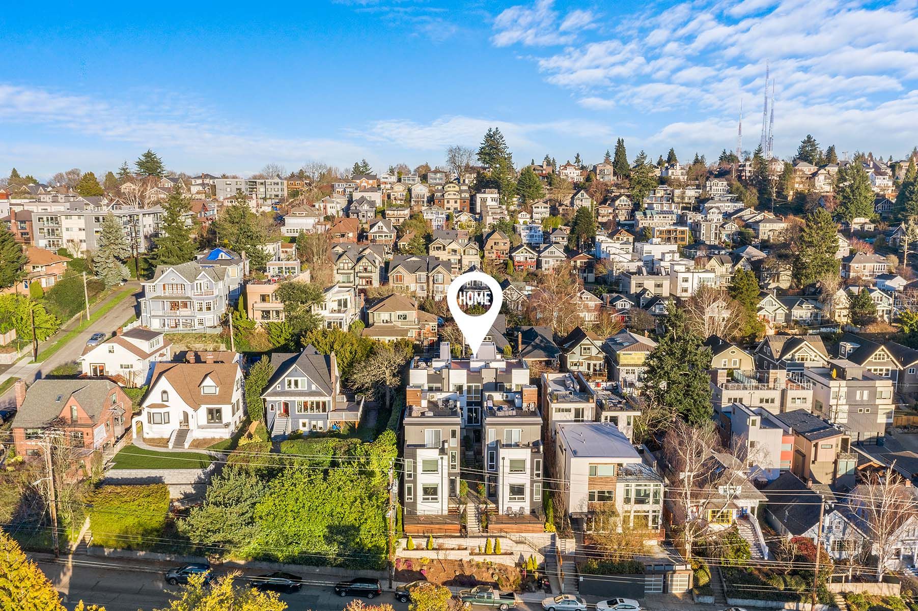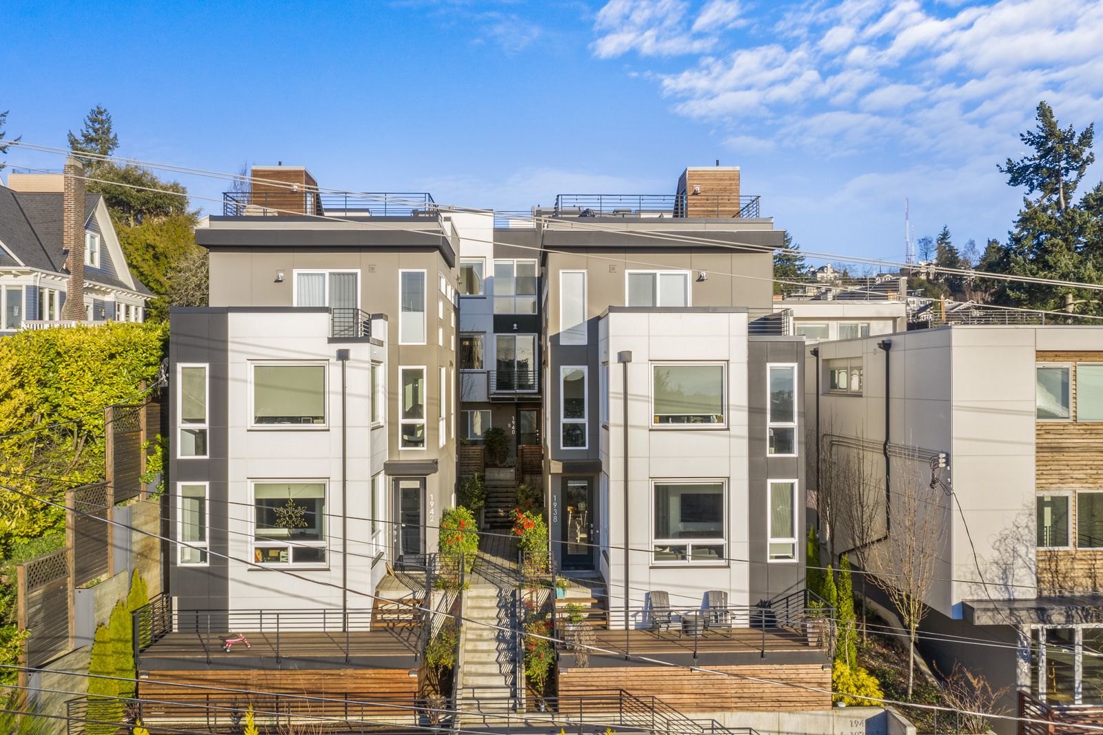 Modern luxury with chic finishes creates the perfect blend of style, quality & design! Your urban oasis sits high above the street capturing unbeatable, panoramic views of the Mountains & Sound. The main level is built for entertaining with an open floorplan, natural sunlight, hardwoods, and a chef’s kitchen w/Bosch appliances. 2 BRs on the lower level offer flexible living spaces for guests, work, or exercise while the primary suite enjoys privacy on the top level, boasting large dual closets, and a 5-piece bath. A/C, BBQ gas line, green energy systems, W/D, parking, & Ring system included. Walk to top-ranked schools, grocery stores, parks, Macrina Bakery, & all the hot spots on Queen Anne Ave. Easy commutes to everywhere by bus, bike, or car.