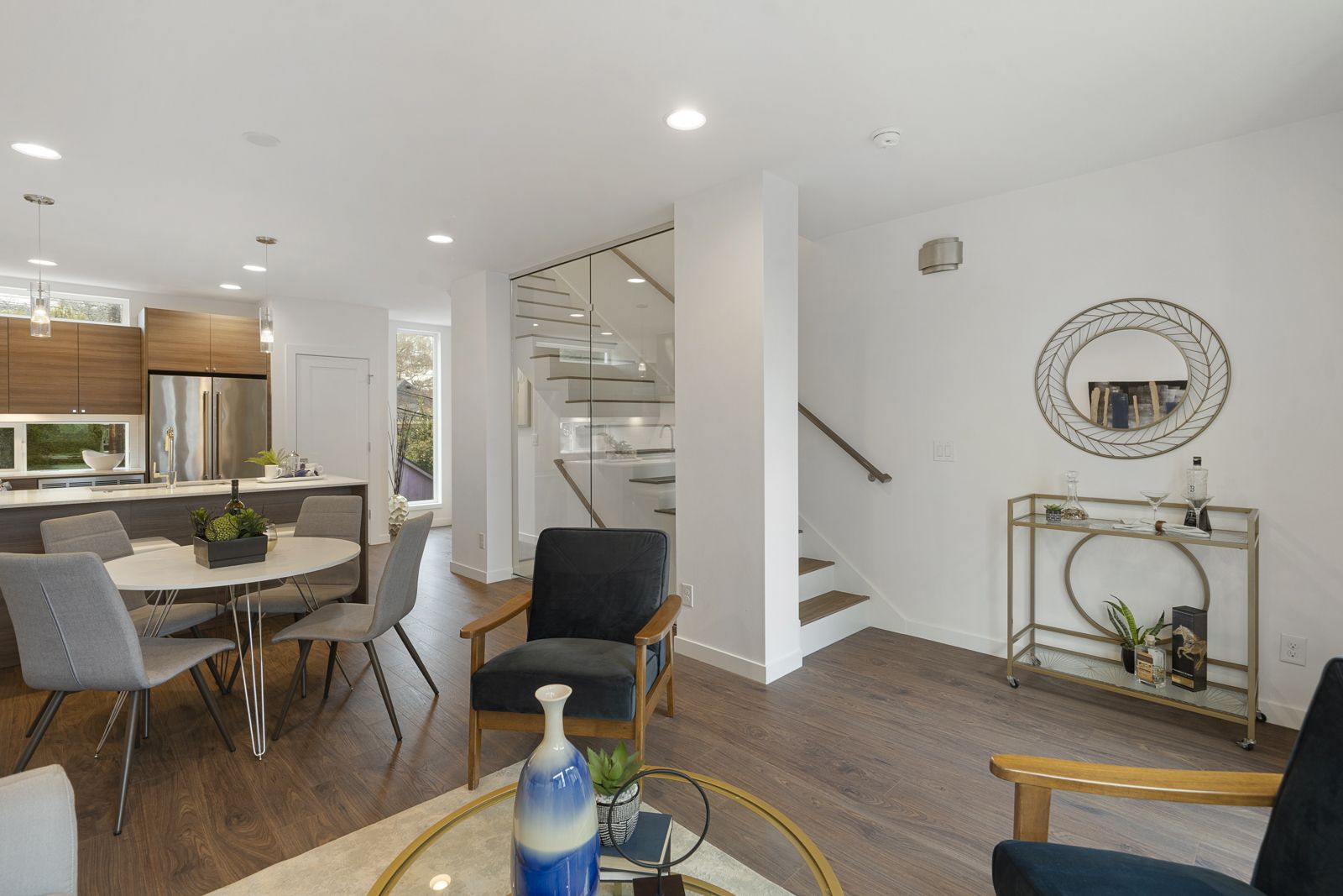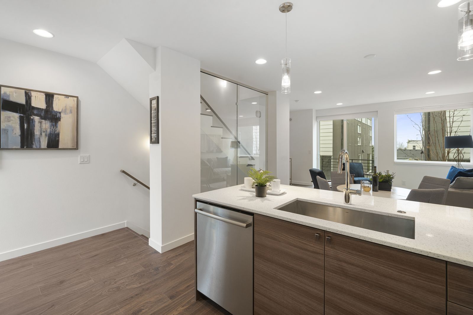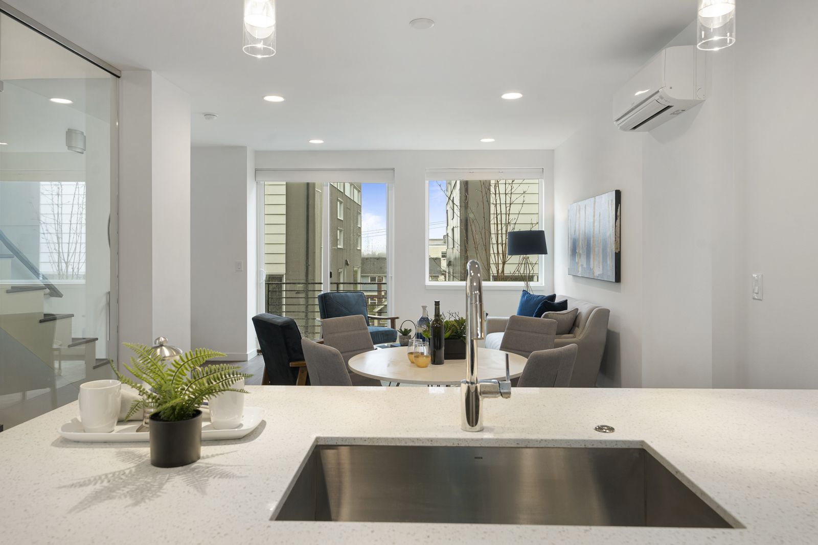 Modern luxury with chic finishes creates the perfect blend of style, quality & design! Your urban oasis sits high above the street capturing unbeatable, panoramic views of the Mountains & Sound. The main level is built for entertaining with an open floorplan, natural sunlight, hardwoods, and a chef’s kitchen w/Bosch appliances. 2 BRs on the lower level offer flexible living spaces for guests, work, or exercise while the primary suite enjoys privacy on the top level, boasting large dual closets, and a 5-piece bath. A/C, BBQ gas line, green energy systems, W/D, parking, & Ring system included. Walk to top-ranked schools, grocery stores, parks, Macrina Bakery, & all the hot spots on Queen Anne Ave. Easy commutes to everywhere by bus, bike, or car.