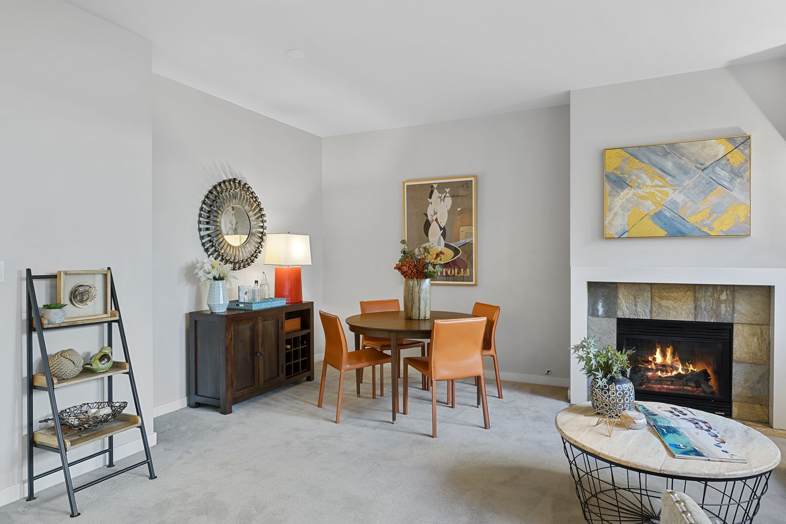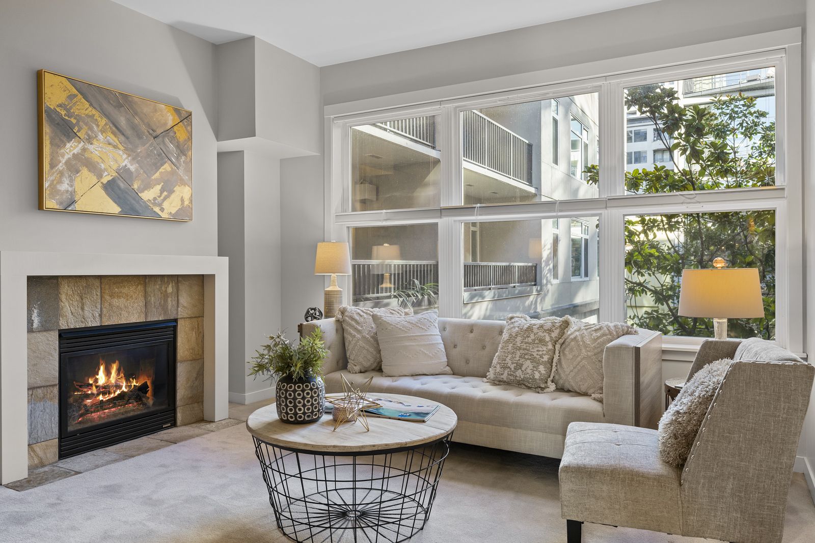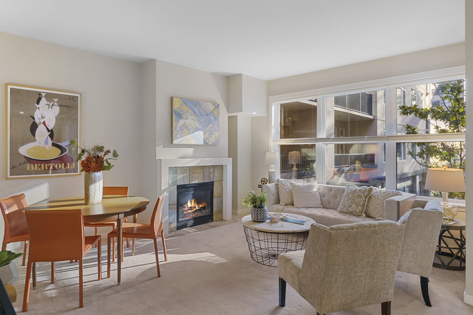 Full of natural light and a cozy fireplace.