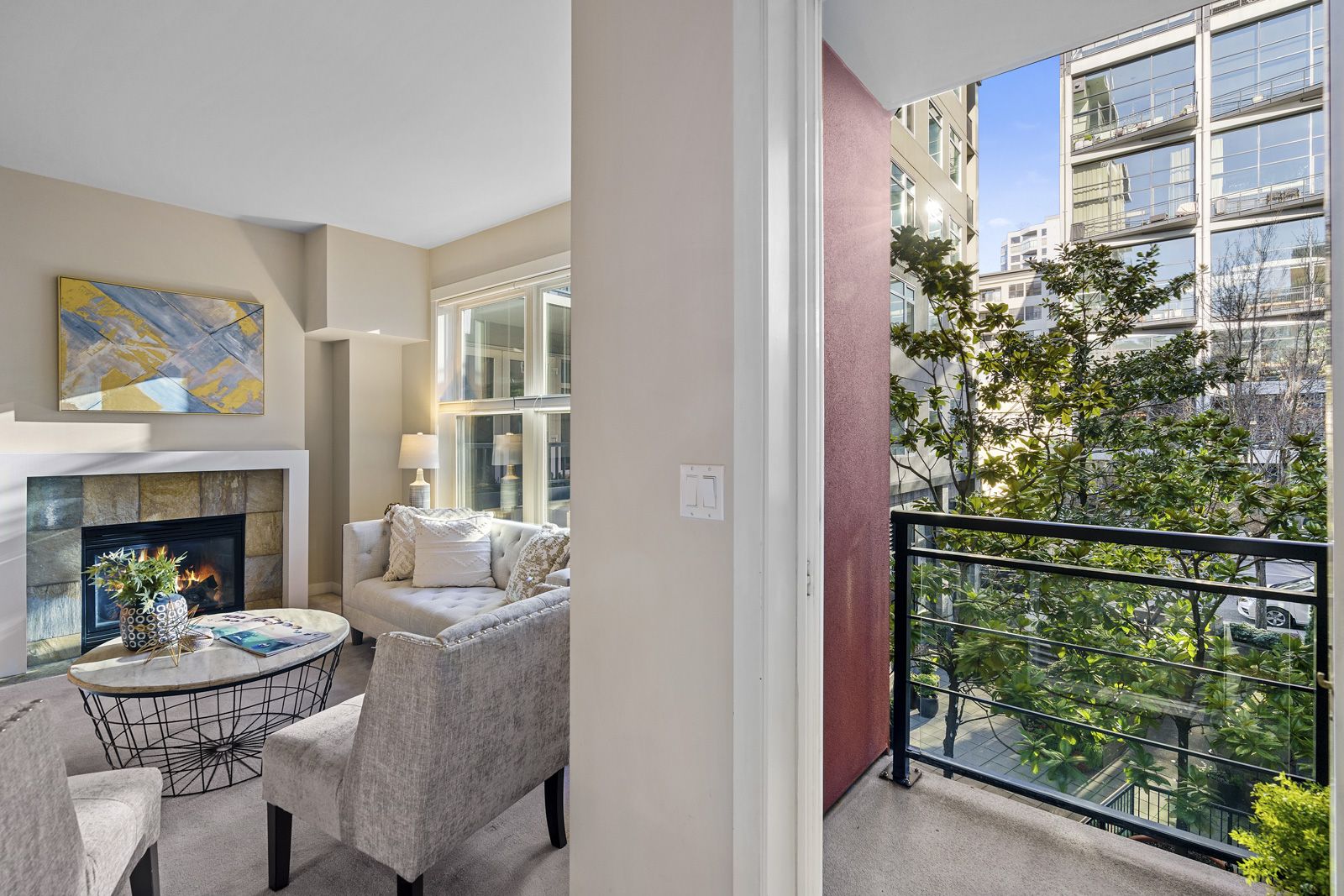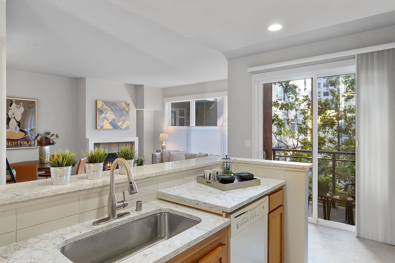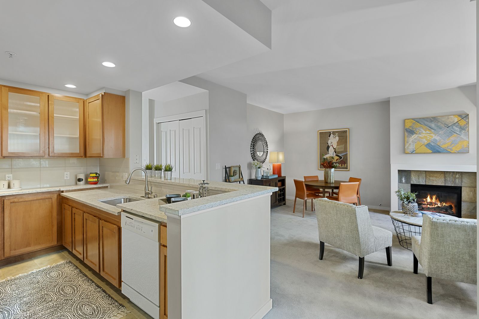 Full of natural light and a cozy fireplace.