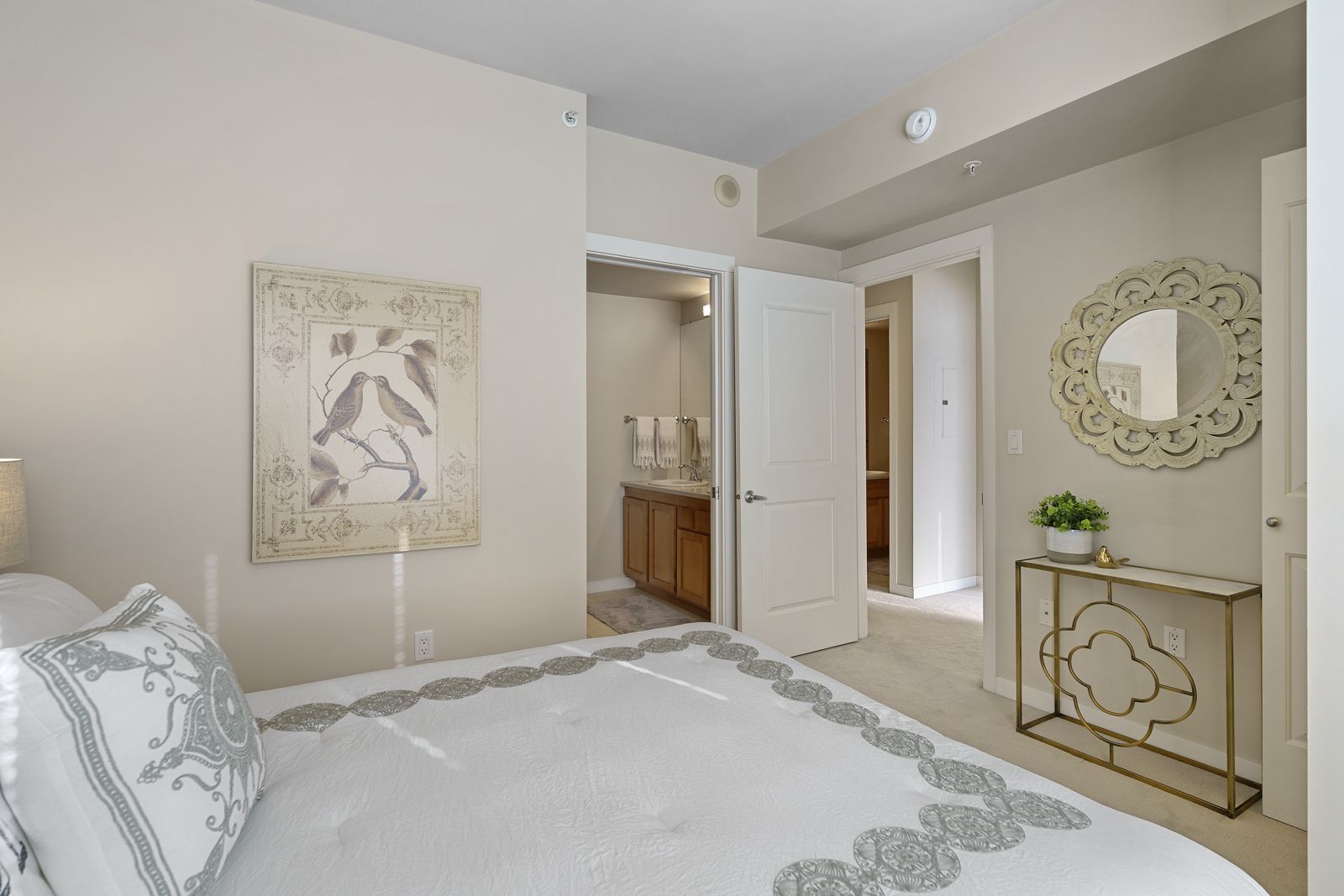 A private balcony overlooking a serene courtyard. 2 EXTRA LARGE parking spaces + storage are conveniently close to the elevator for EZ access. Well-run HOA is pet-friendly with w/luxury amenities incl a 24/7 concierge, gym, guest suites, & rooftop deck w/ panoramic Sound, Mountain, & City views.