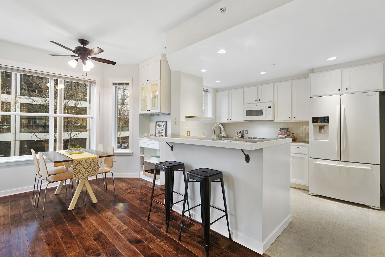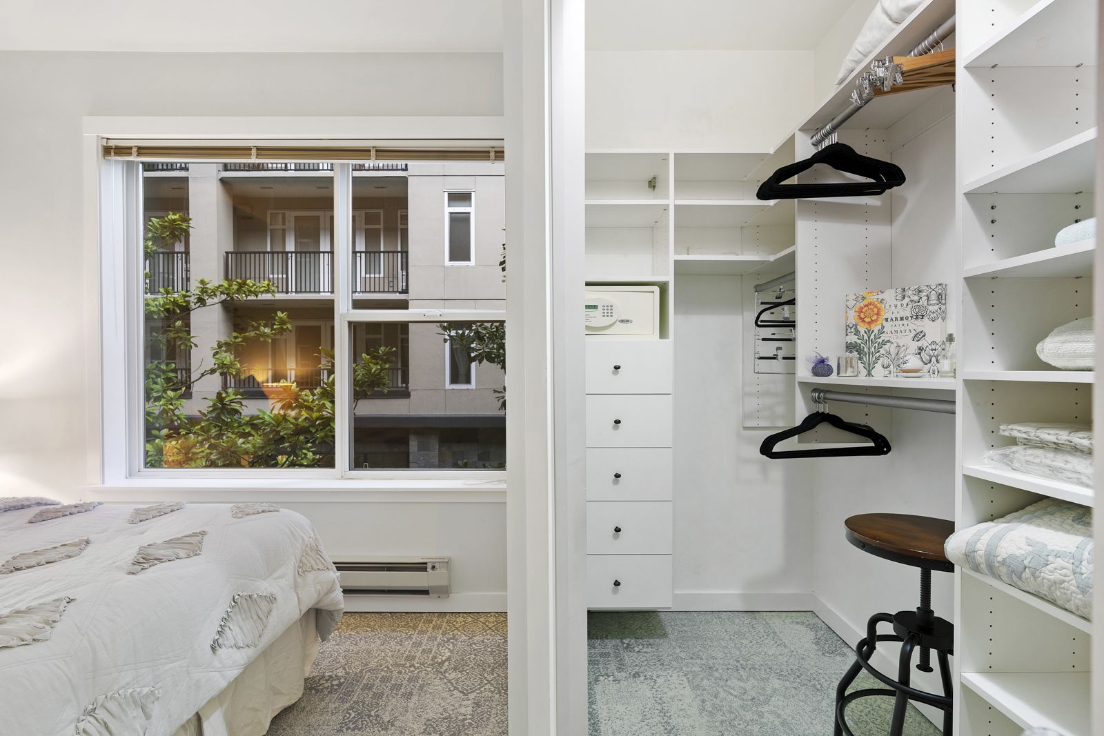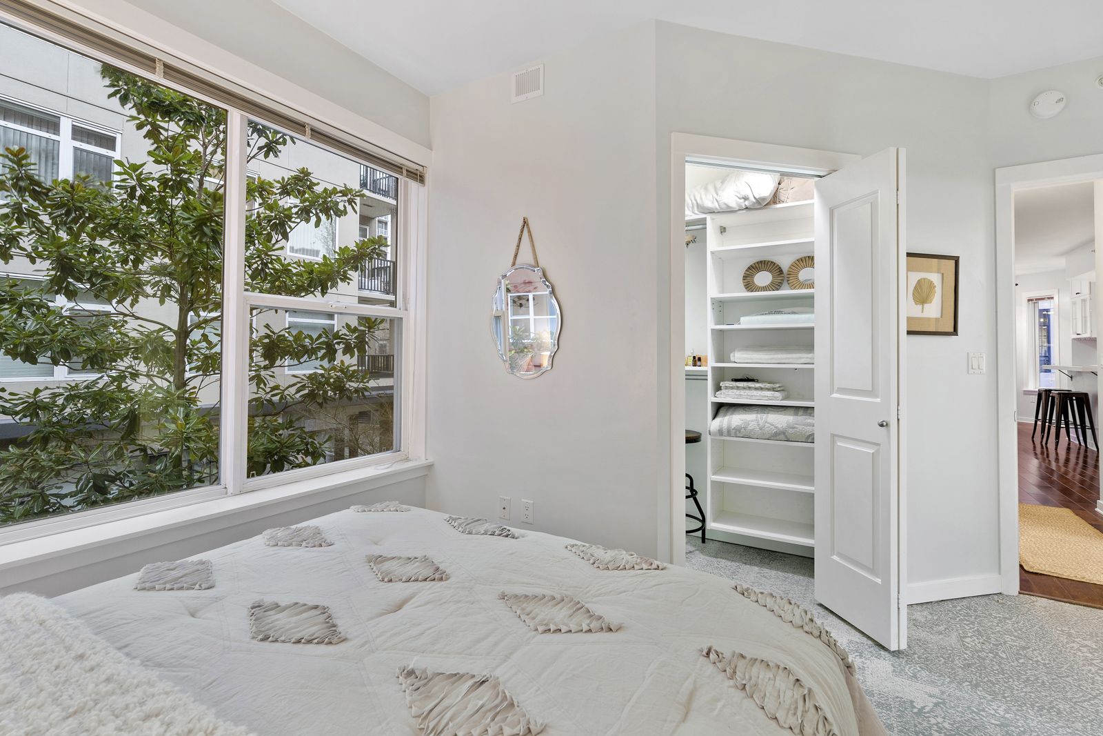 Elegance and comfort blend beautifully in this spacious tree-top level 2 bedroom, 2 bathroom corner unit at the coveted Vine Building! It’s the perfect floor plan for today’s work from home lifestyle with an open layout, generous window, and a balcony with city & courtyard views.