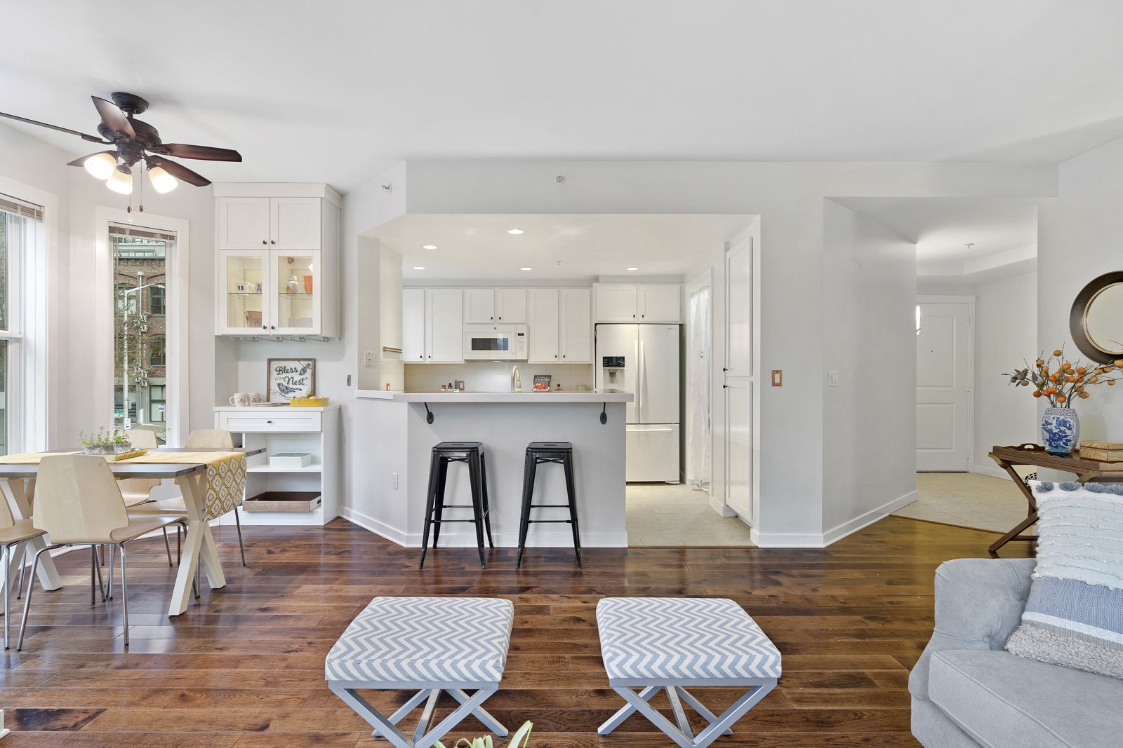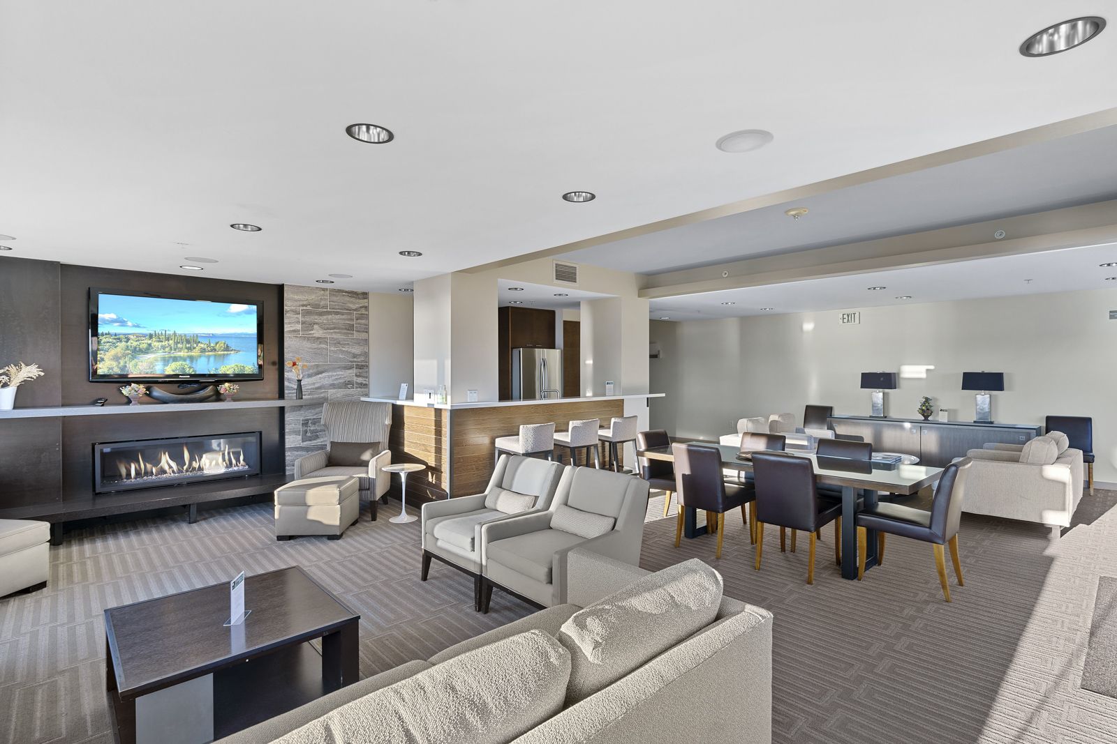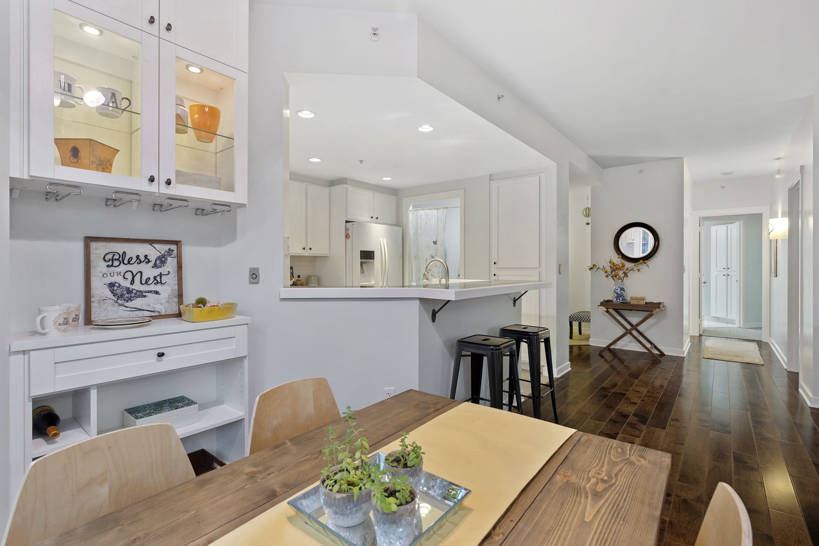 The expansive living space features beautiful hardwood floors, a gas fireplace, a custom wine bar plus designer finishes & touches throughout.