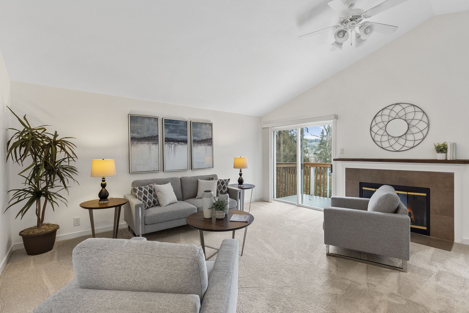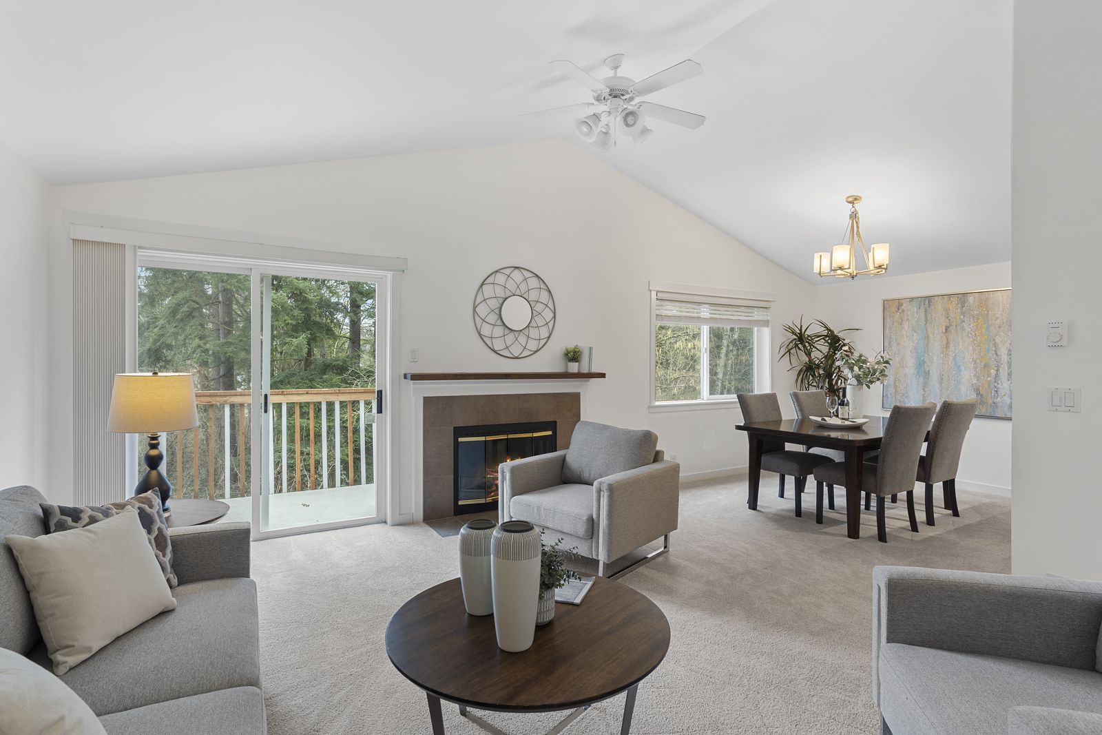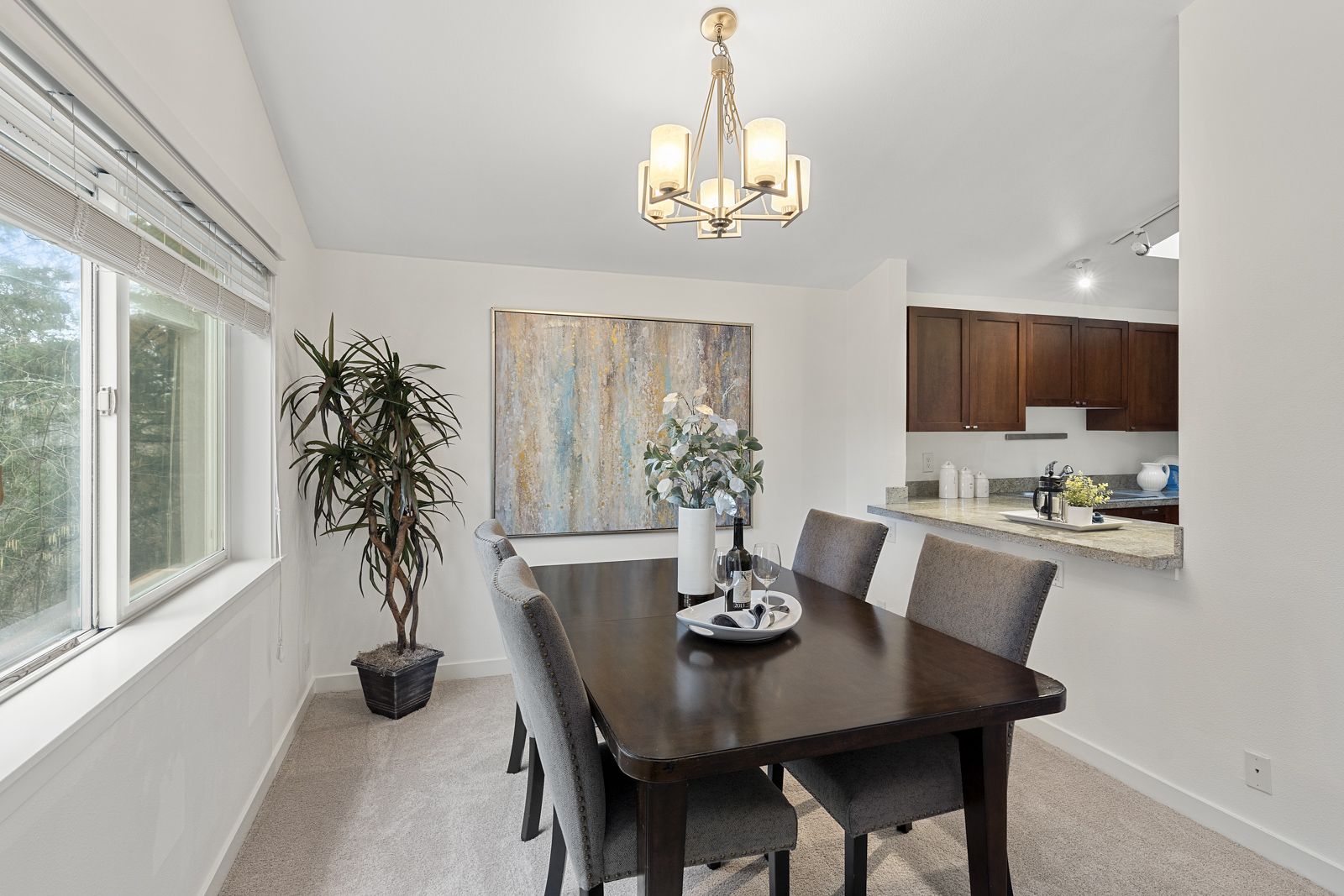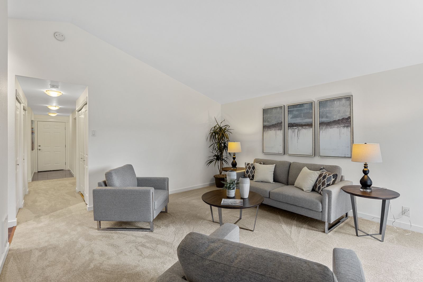The unique layout of this top floor, stairs-free condo basks in warm all-day sunlight highlighting vaulted ceilings, remodeled bathrooms, a beautifully updated kitchen, new carpet, new appliances, granite countertops, fresh paint and comfortable living spaces.