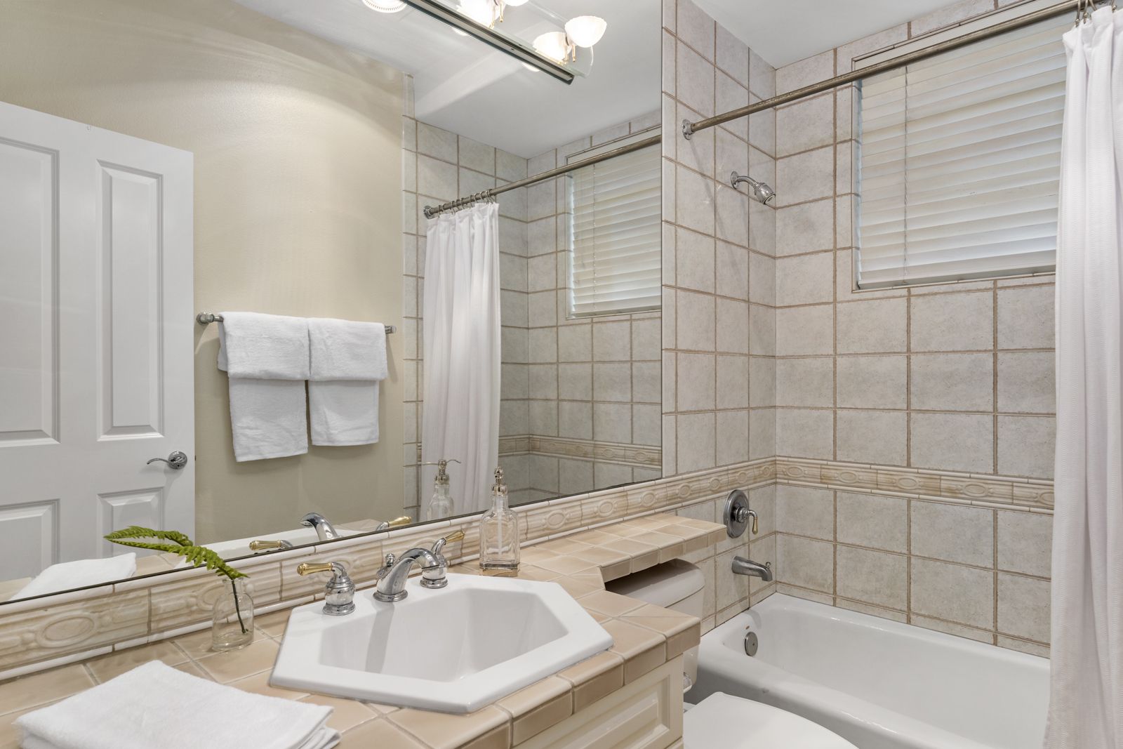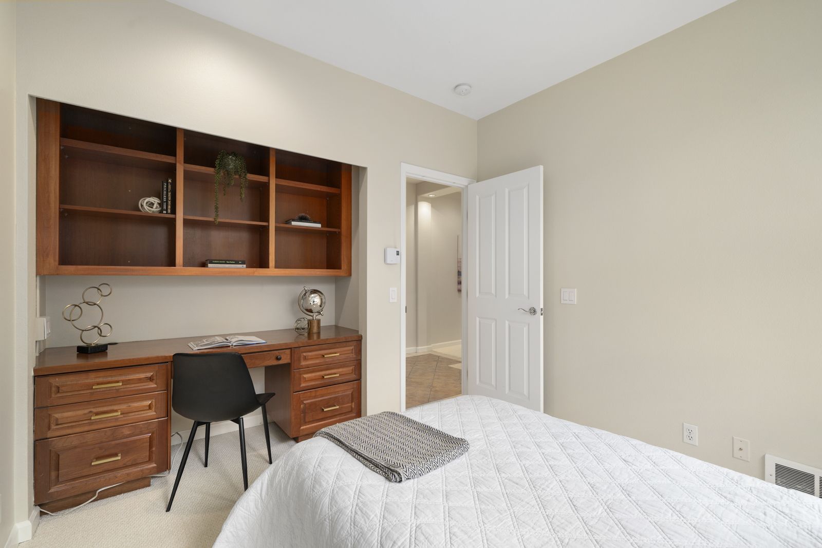 The second bedroom has a lovely built-in desk and overhead cabinets, perfect for those still working from home!