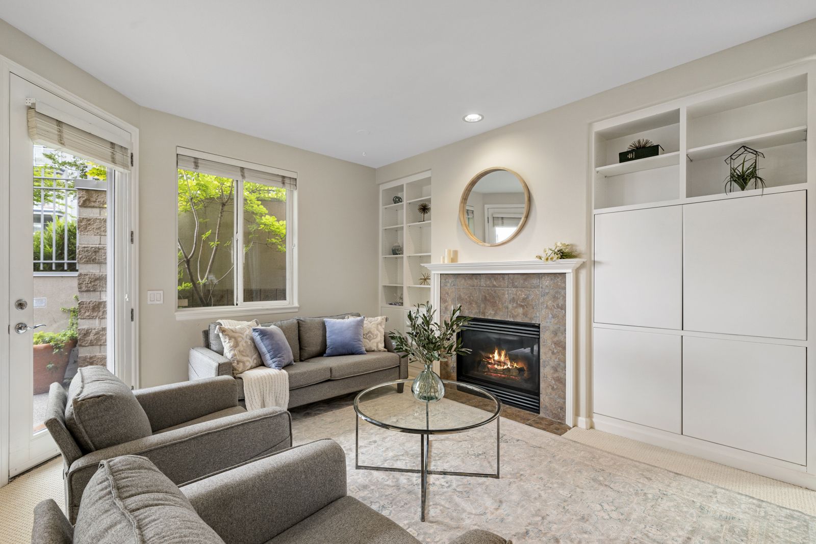 The electric fireplace is the perfect place to cozy up on a gray Seattle afternoon.