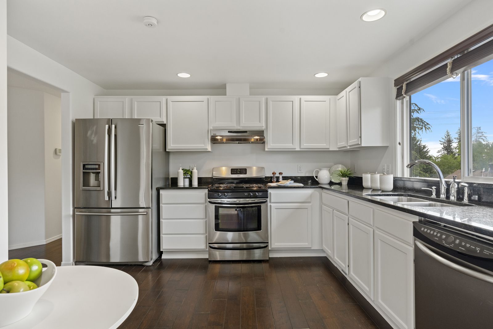• Updates in the kitchen and bathrooms refreshed the spaces to give them sleek, modern vibes - the freshly painted cabinets really transform these spaces!
