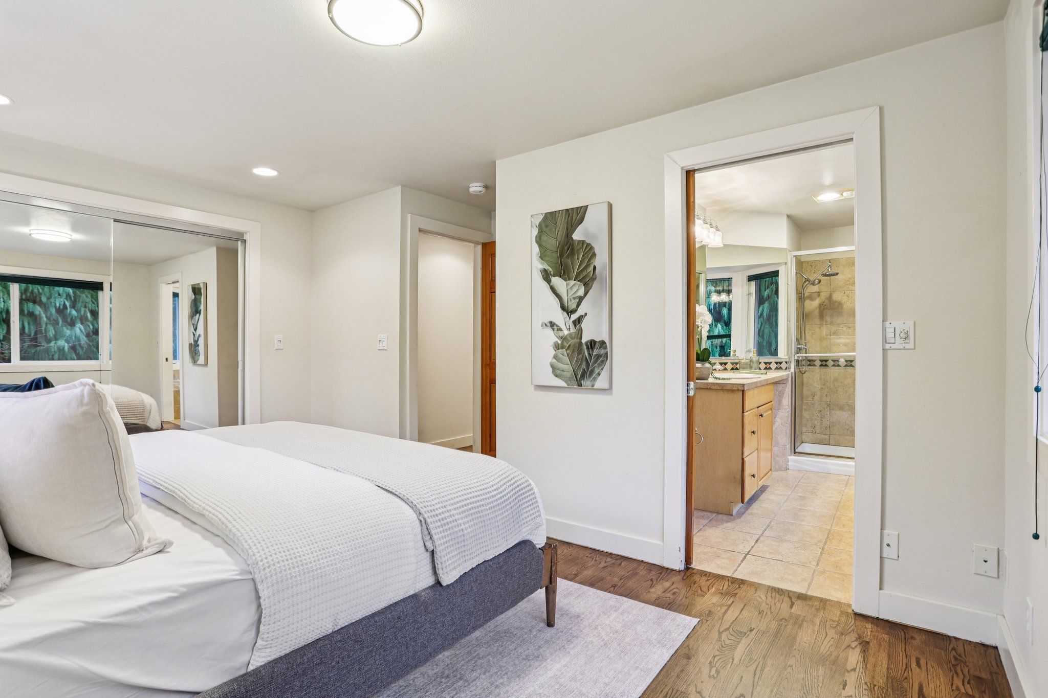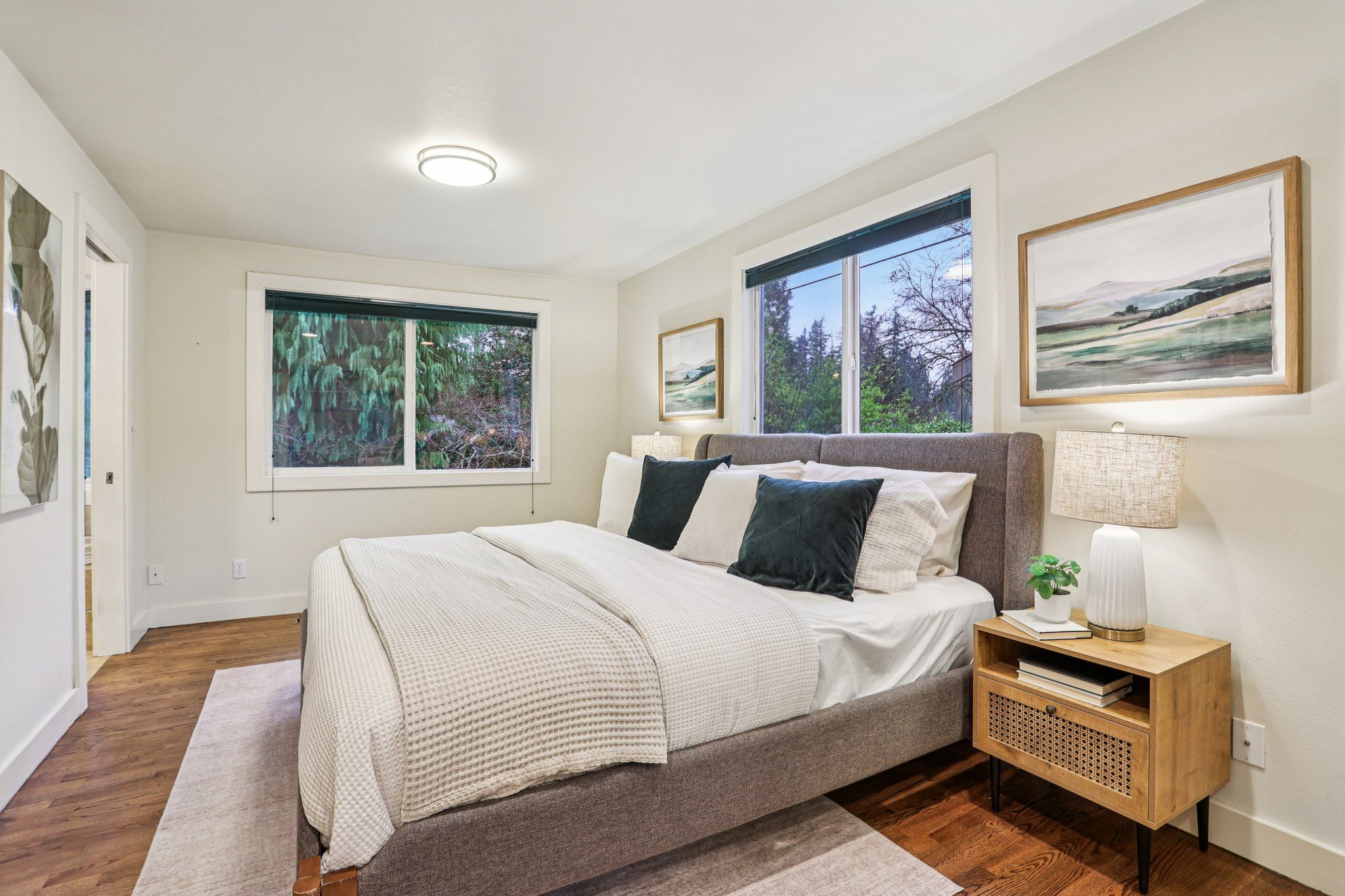 Opportunity awaits in this rare mid-century home with a flexible ADU perfect for rental income or multigenerational living, set just blocks from Microsoft! Move in ahead of the 2026 return to office to enjoy abundant natural light and a smart, spacious layout. The main living space is open and inviting with newly refinished hardwood floors, vaulted ceilings, central A/C, and three spacious bedrooms. Lower level 2-bedroom ADU can connect to the rest of the home for extra flexibility and a 5-bedroom layout, or use it as a separate MIL/rental unit with exterior entry. Outside, a brand-new Trex deck overlooks a tranquil fenced yard, and a new roof gives you peace of mind. Peaceful location close to trails, beloved Marymoor Park, prized Lake Washington schools, light rail, great restaurants, and all of Redmond's sought-after amenities.