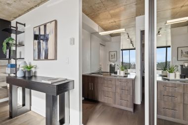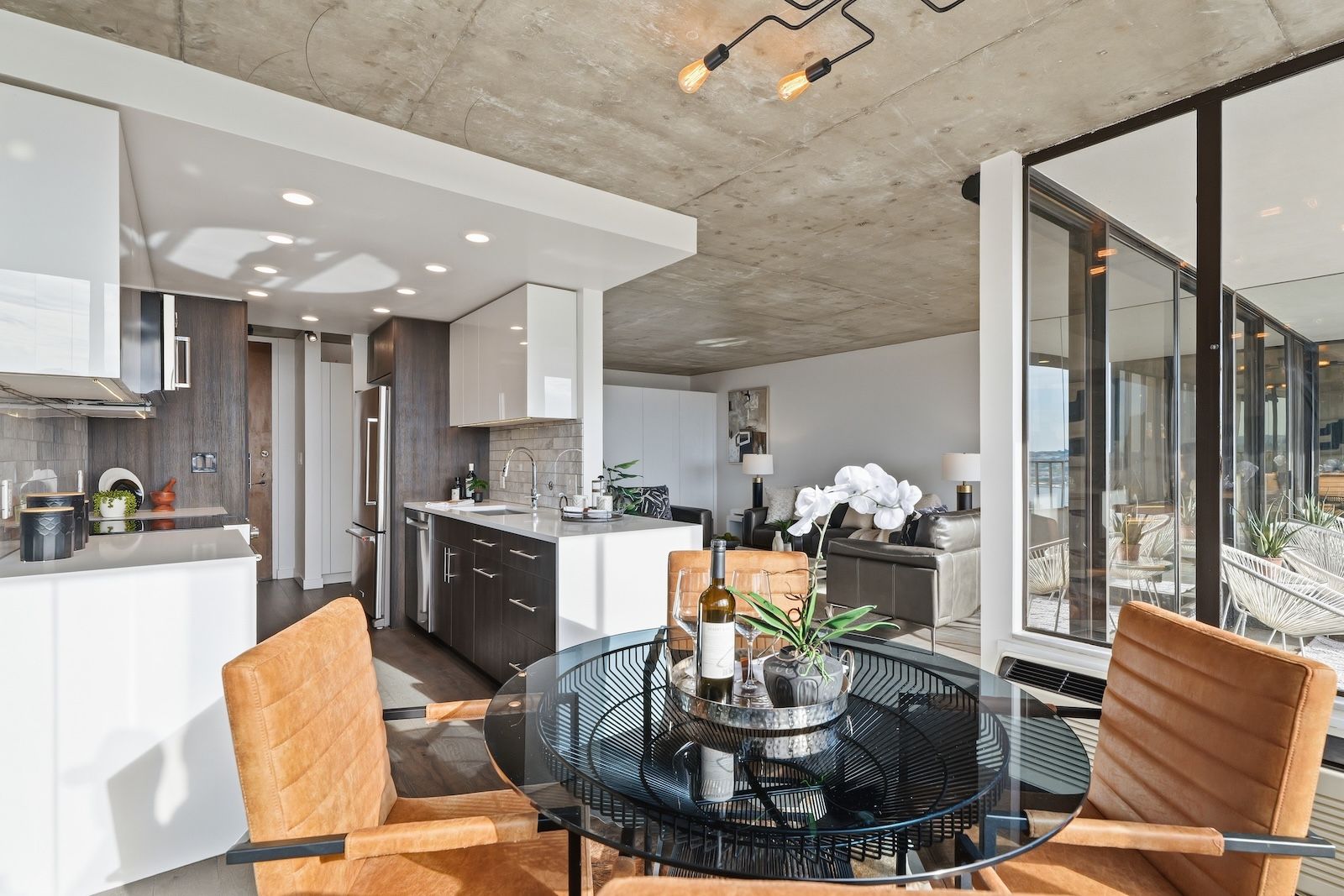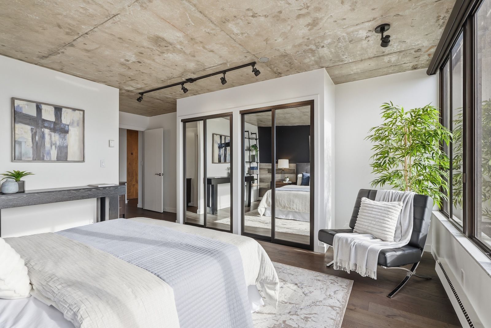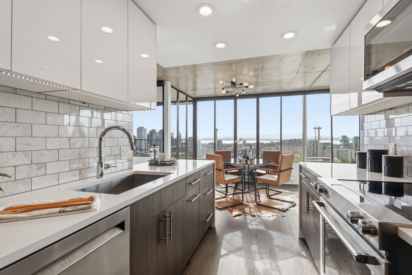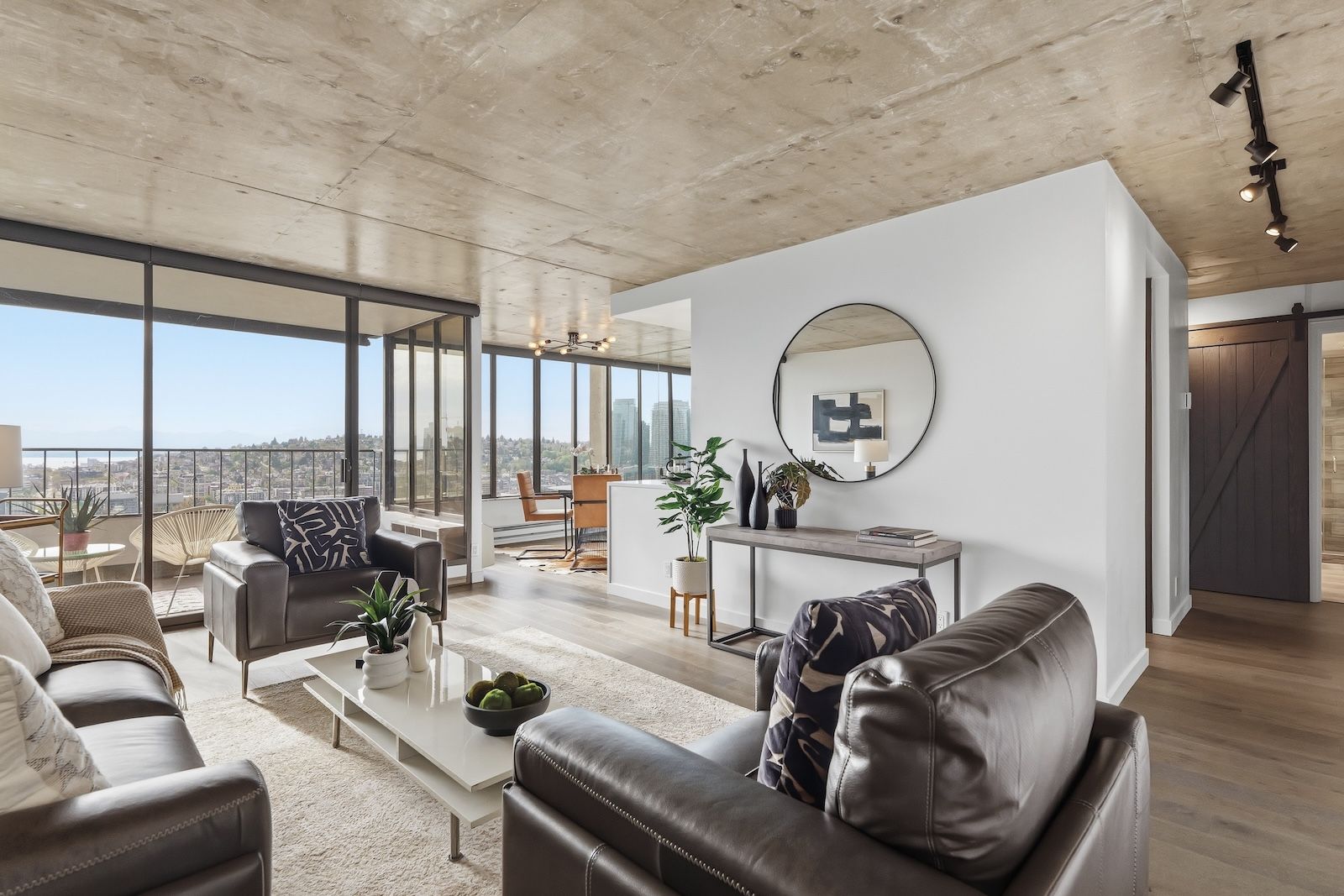 A true unicorn resale at The Shannon: this is not your typical condo. Taken down to the shell and reimagined with a striking industrial-modern aesthetic, this one-of-a-kind 2 bedroom, 1.75 bathroom unit with the building's most sought-after B floor plan pairs exceptional views with a level of design and finish rarely found anywhere. Wake up to sweeping outlooks of the downtown skyline, Space Needle, Lake Union and Elliott Bay, then step onto your large private deck to take it all in. Inside, nearly every surface has been elevated with intention: polished concrete ceilings, walls of glass, quartz countertops, marble subway tile, custom built-ins with integrated outlets, custom closets, updated lighting, and beautifully renovated bathrooms. Warm, dramatic and completely distinct from standard inventory. Fantastic light and air flow, plus built-in A/C units to keep you cool. Solid concrete construction delivers the kind of quiet that has to be experienced. The practicalities match the vision: the HOA covers all utilities including electricity and internet, has no rental cap, and offers fantastic amenities to residents: secure parking, storage, indoor heated pool, sauna, fitness center, and ample guest parking for when friends come to visit. Walkable access to Capitol Hill's best restaurants, and an easy stroll downtown complete the picture. The Shannon offers a rare blend of privacy, quiet, amenities and long-term appeal for the urban dweller who wants to have it all.