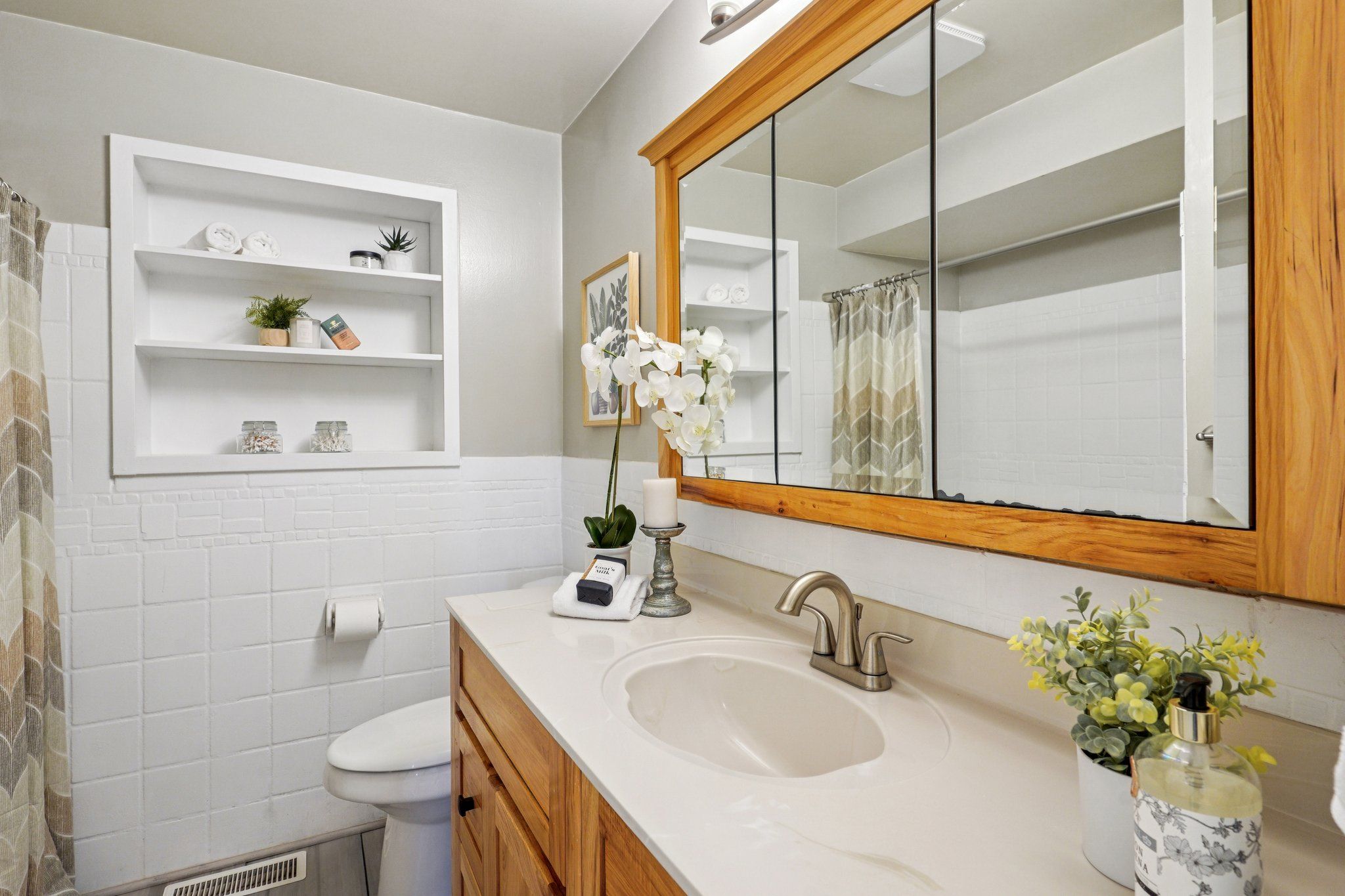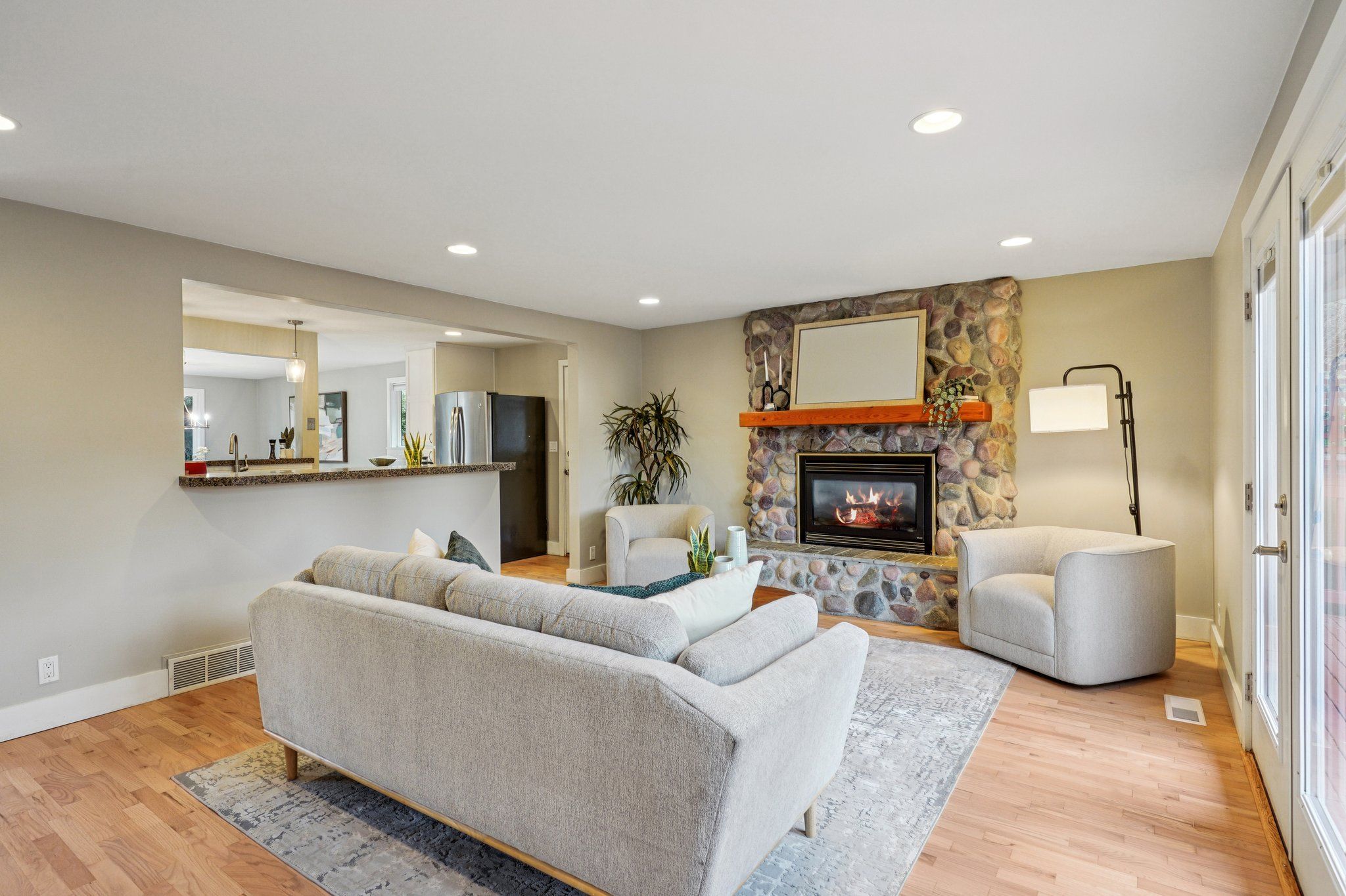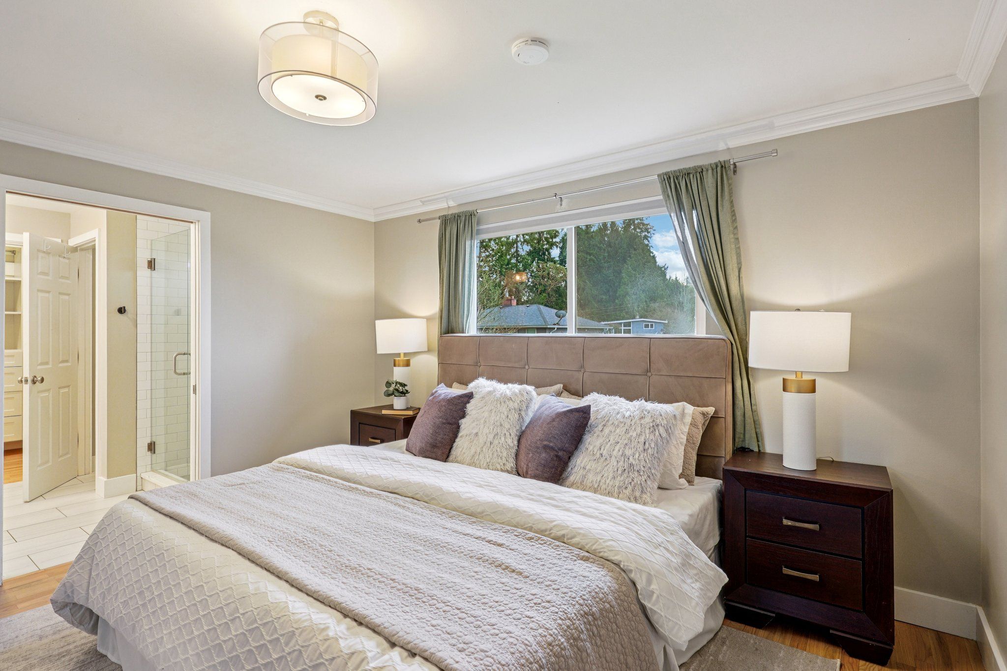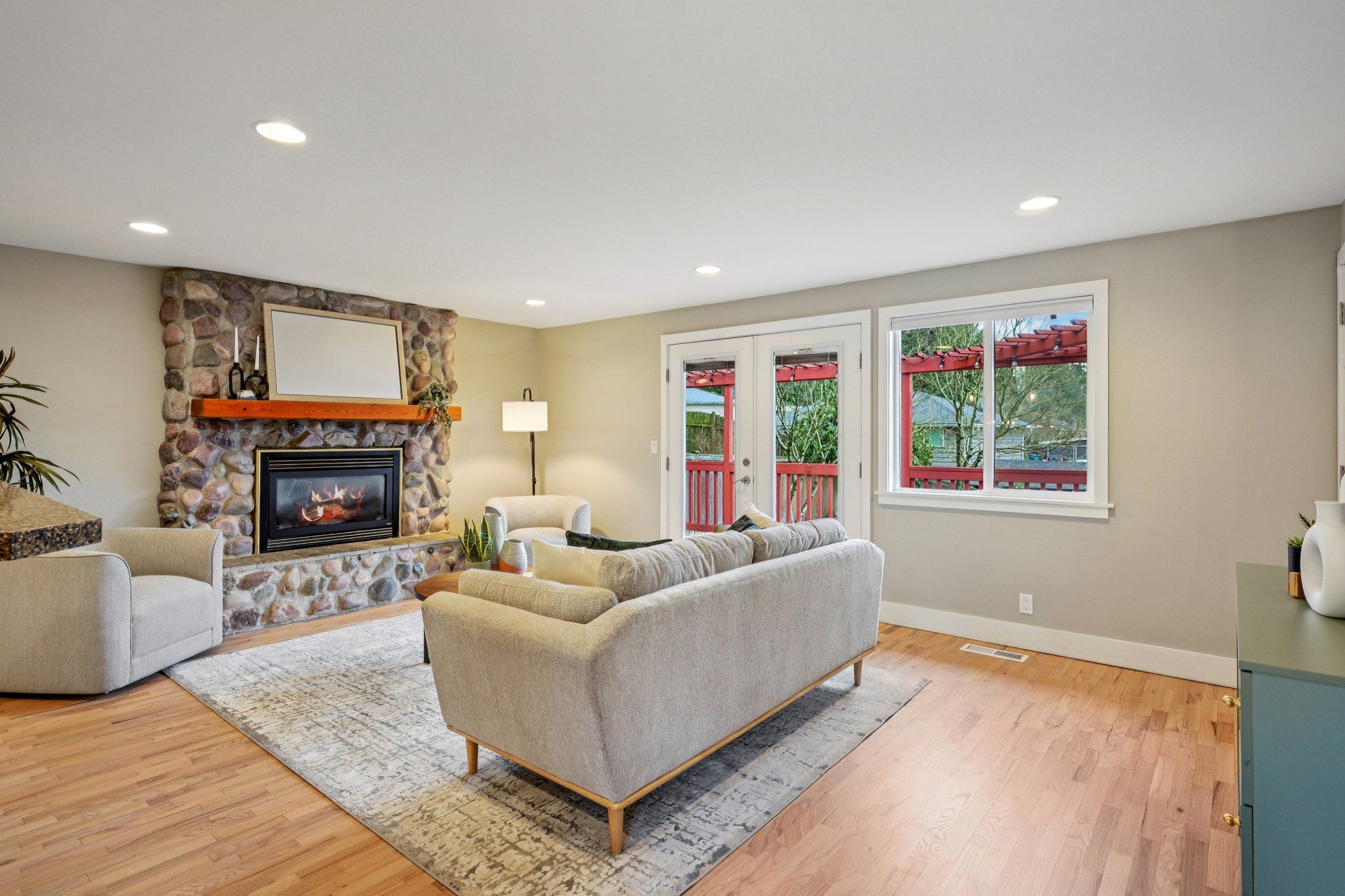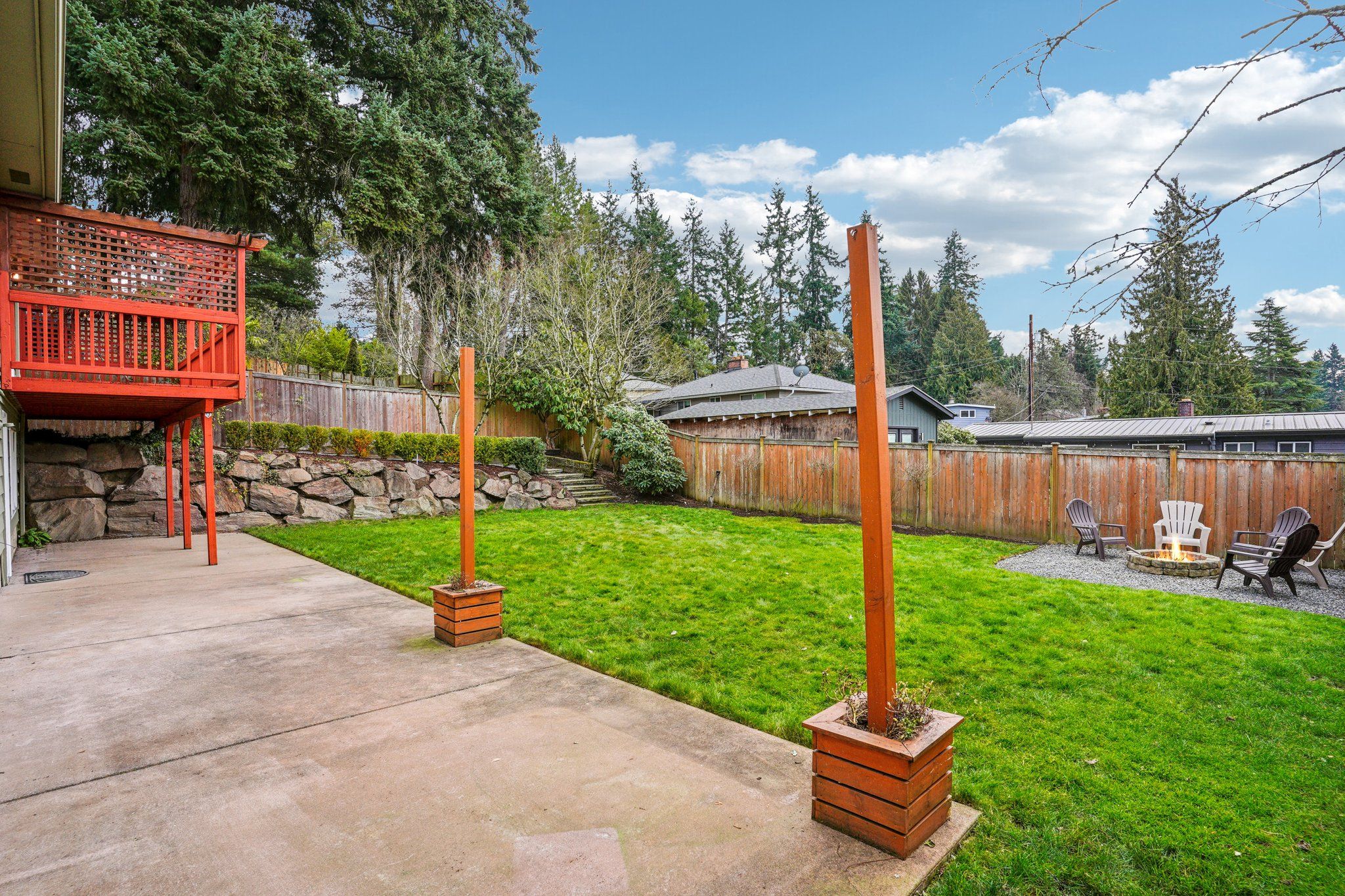 Tucked near the end of a low-traffic street just moments from Ballinger Park, this Mountlake Terrace home is truly unexpected! Offering both privacy & proximity, you can have it all from this fantastic location: a quiet, picturesque neighborhood to come home to, while all the amenities are just moments away: light rail, groceries, dining, I-5 access & more. A courtyard entry leads you into a bright, open layout boasting newly refinished hardwood floors, central A/C, abundant windows & tons of storage. Life flows effortlessly between the kitchen & the living/dining areas, perfect for day-to-day or entertaining. Pick up takeout from a number of nearby spots or whip up culinary creations in the kitchen, equipped w/ stainless appliances, a gas cooktop & bar seats to watch the chef work. Versatile layout w/ 2 beds on each level, including a main floor primary w/ a remodeled ensuite & custom walk-in closet. A new water heater & new furnace give you peace of mind. Multiple outdoor spaces are ready for your enjoyment; BBQ on the sun-drenched deck, toast s'mores around the fire pit, or gather w/ friends on the roomy patio - it all overlooks lush mature landscaping surrounding your private oasis. Unbeatable location walkable to Ballinger Park & light rail/buses, + everything you could need just mins away. Some may think that a move to the suburbs means giving up connection to all the things you love about city living; from here, that couldn't be farther from the truth!