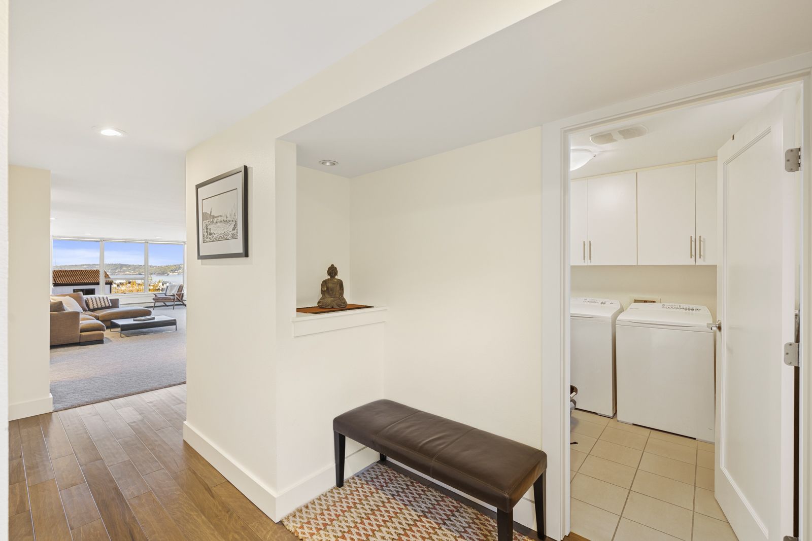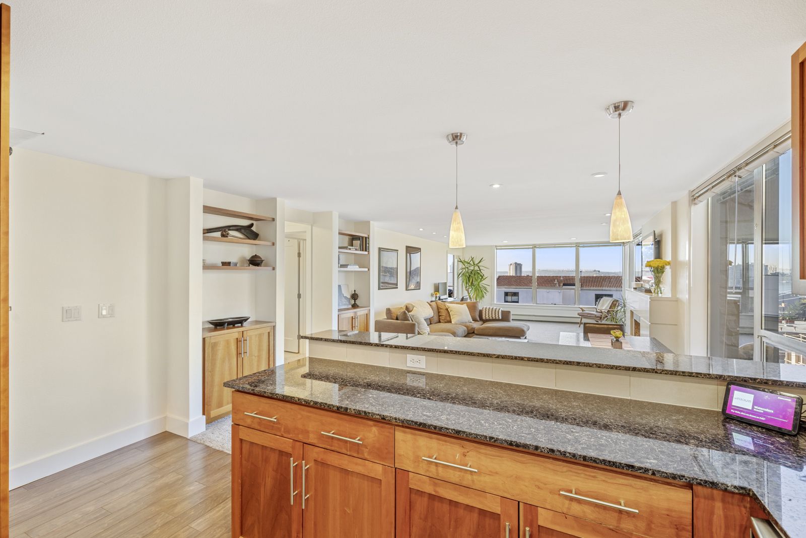 That captures feel-good views from the kitchen to the bedroom.